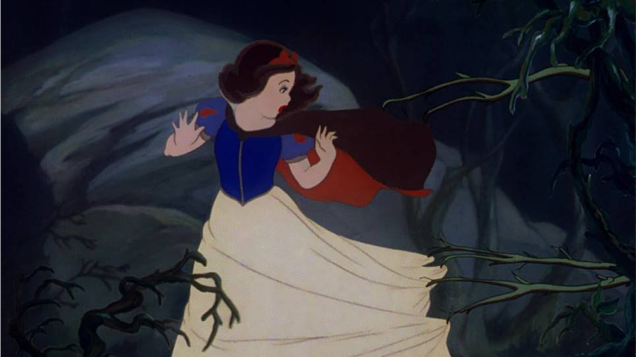 De las primeras escenas de miedo en nuestra infancia, sí, es en Blancanieves cuando esta se adentra en el bosque para escapar del cazador. ¡Todo a su alrededor causó gran temor!