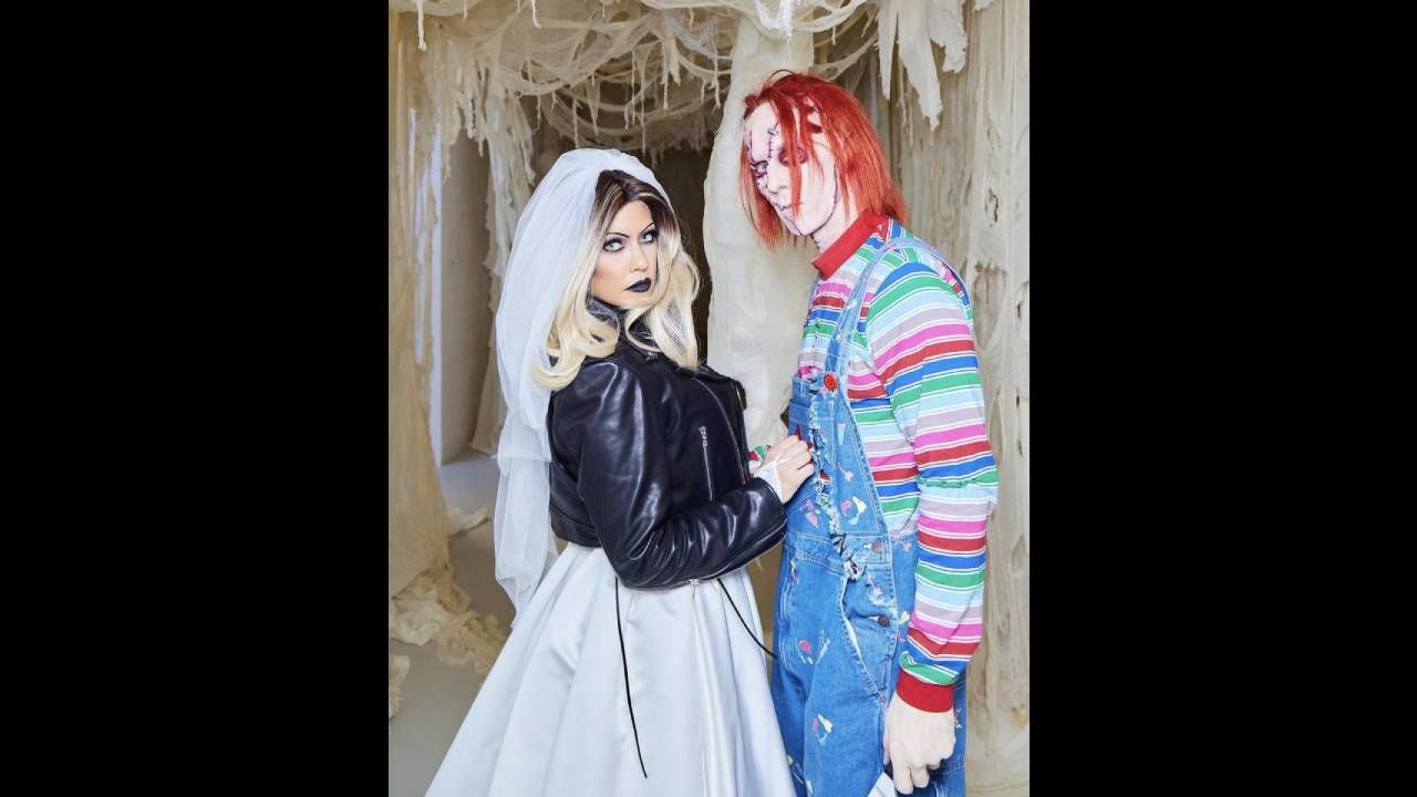 Kourtney Kardashian y Travis Barker sí se ven espeluznantes recreando a la pareja de plástico más tenebrosa de todas. Así sería La novia de Chucky si fuera una película con personas reales y no con muñecos como antagonistas.