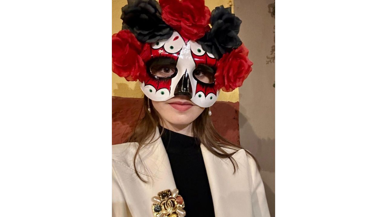 Las catrinas son, quizá, la parte más conocida del Día de Muertos a nivel mundial. La hija del compositor detrás del clásico de Disney Tarzan aprovechó la ocasión para portar un hermoso antifaz de maquillaje de catrina y una corona de flores, que le combinaban muy bien para la boda.