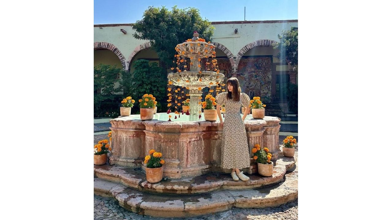 Este fin de semana la actriz de Mank viajó a nuestro país acompañada de su esposo, el director y guionista Charlie McDowell, para asistir a la boda de unos amigos suyos. La bella modelo no desaprovechó la oportunidad de retratarse en las calles del pueblo mágico, que aún se encontraban adornadas con motivo del día de muertos.