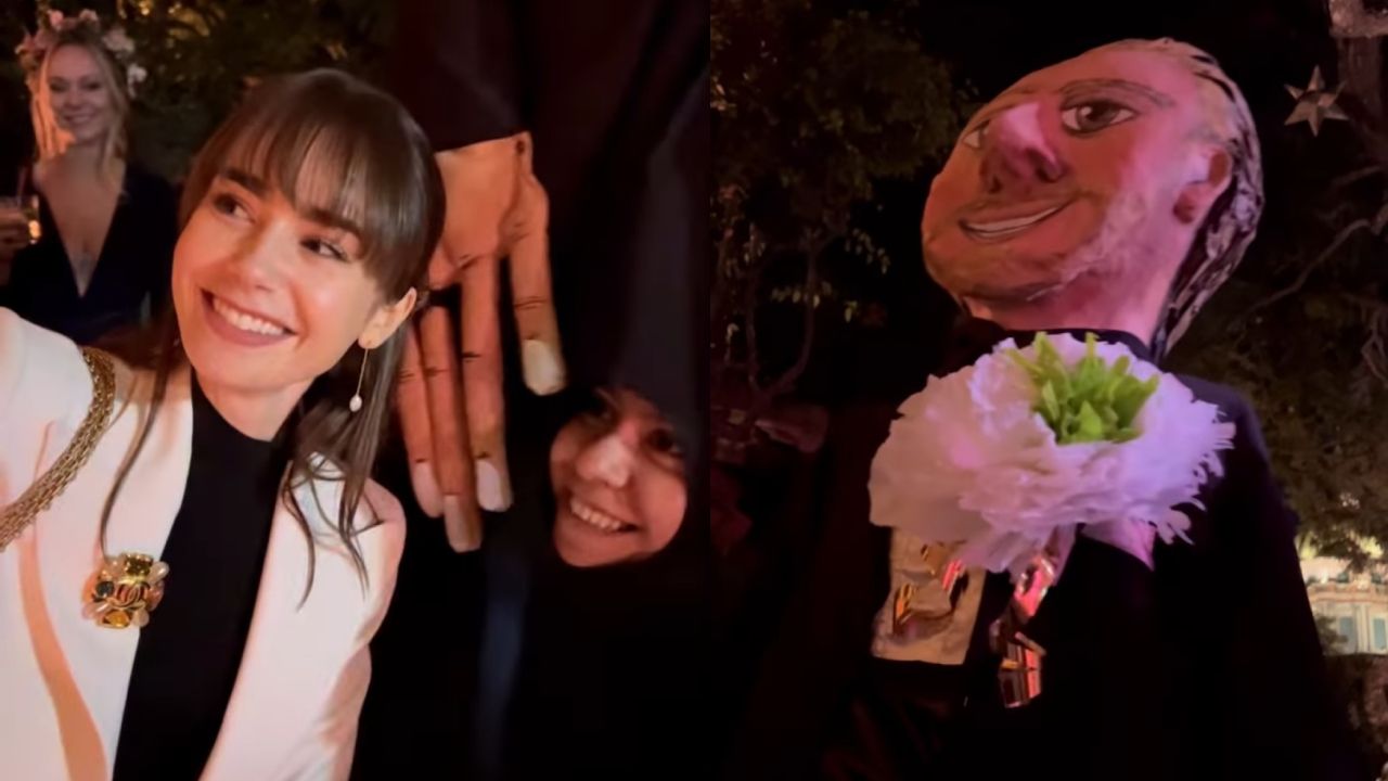 La protagonista de Espejito, espejito compartió en sus historias de Instagram su emoción al ver las mojigangas de los novios. Podríamos decir que la actriz británica quedó maravillada con esta peculiar tradición, pues hasta se retrató con las personas encargadas de hacer bailar a las grandes versiones cómicas de los recién casados.