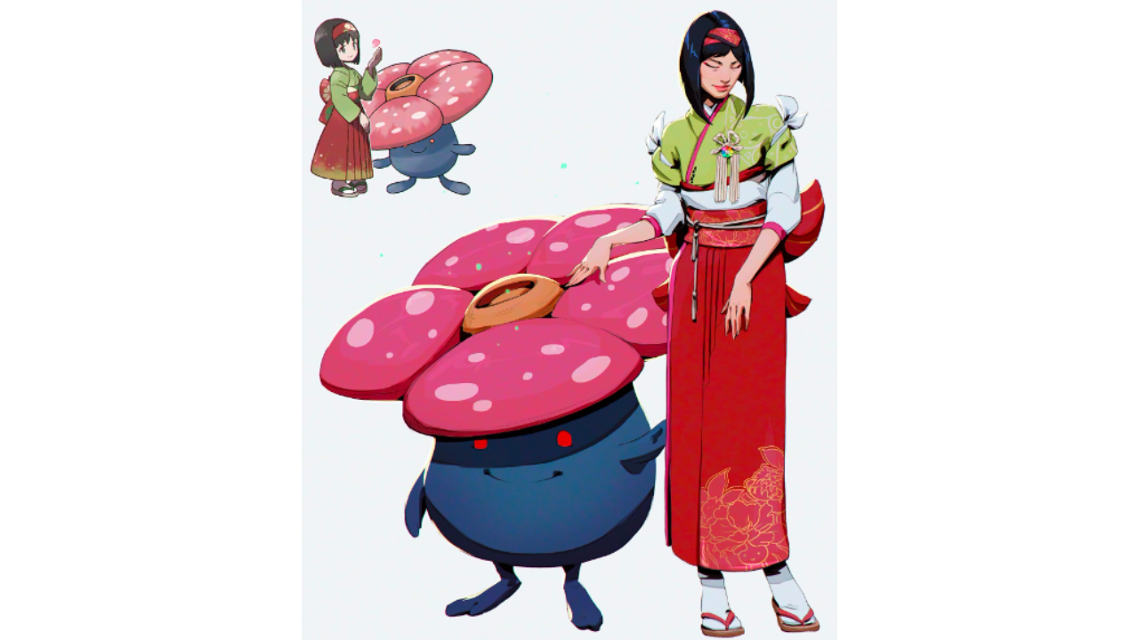 La cuarta líder de gimnasio de la región Kanto, Erika vive en la Ciudad Azulona y tiene en la Medalla Arcoiris. Su equipo está conformado técnicamente por Pokémon de tipo planta.