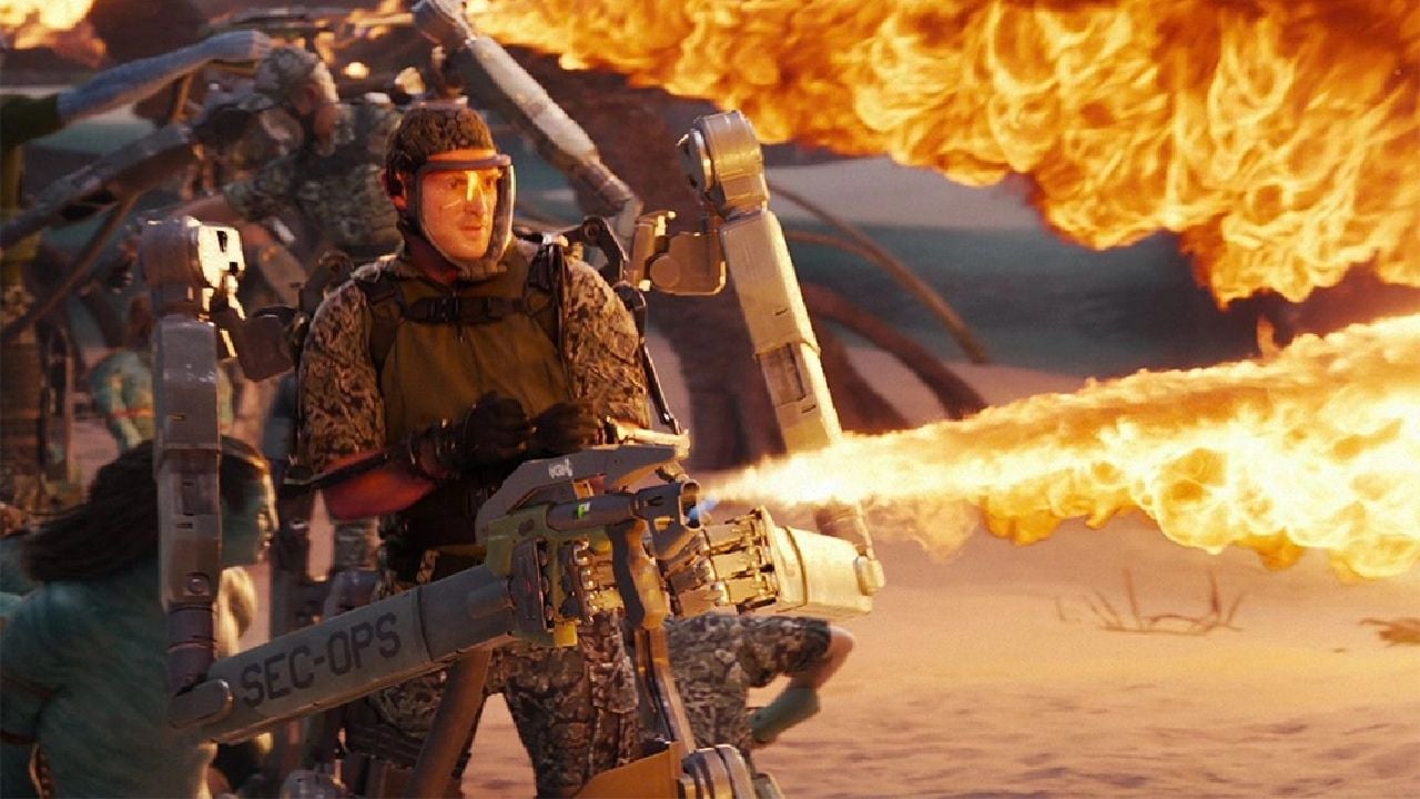 Una de las escenas que provocan más impotencia es cuando el coronel Miles Quaritch (Stephen Lang) ordena a sus discípulos que incendien las cabañas de los Na'vi en la tribu Metkayina. Los militares portan un Skel Suit que los ayuda a alcanzar la altura de los nativos de Pandora.