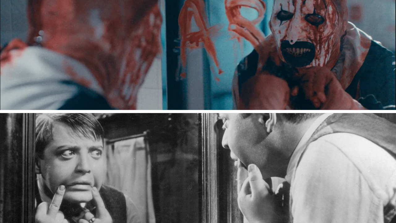 Basta con recordar a Robert De Niro frente al espejo en la icónica escena de Taxi Driver para entender uno de los simbolismos más recurrentes de este objeto: confirmar la identidad del personaje. Lo mismo hace Art the Clown en los primeros minutos de la secuela; no sólo escribe su nombre con sangre en el espejo, sino que confirma su existencia con el reflejo de una malévola sonrisa. Un fabuloso homenaje al depredador sexual y asesino de niños de M - El vampiro de Düsseldorf de Fritz Lang.