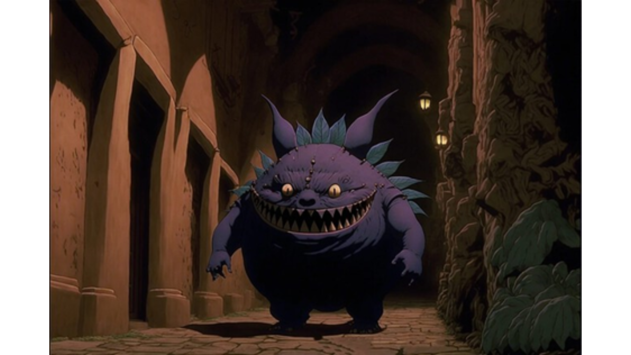 Gengar se oculta por las noches para absorber el calor de las presas que sufren escalofrío. Es de tipo fantasma/veneno. Gengar en versión Studio Ghilbin definitivamente se ve como un gran monstro espeluznante y muy fuerte.