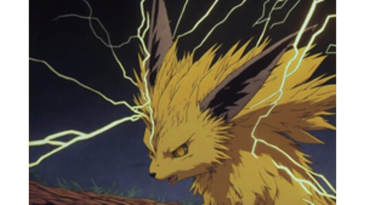 Jolteon es un Pokémon relámpago con una gran agilidad y velocidad que convierte su pelaje en forma de púas. Este nuevo estilo lo hace lucir aterrador; tiene unos ojos que causan miedo, sí, ya se acercó al estilo de los personajes de El viaje de Chihiro.