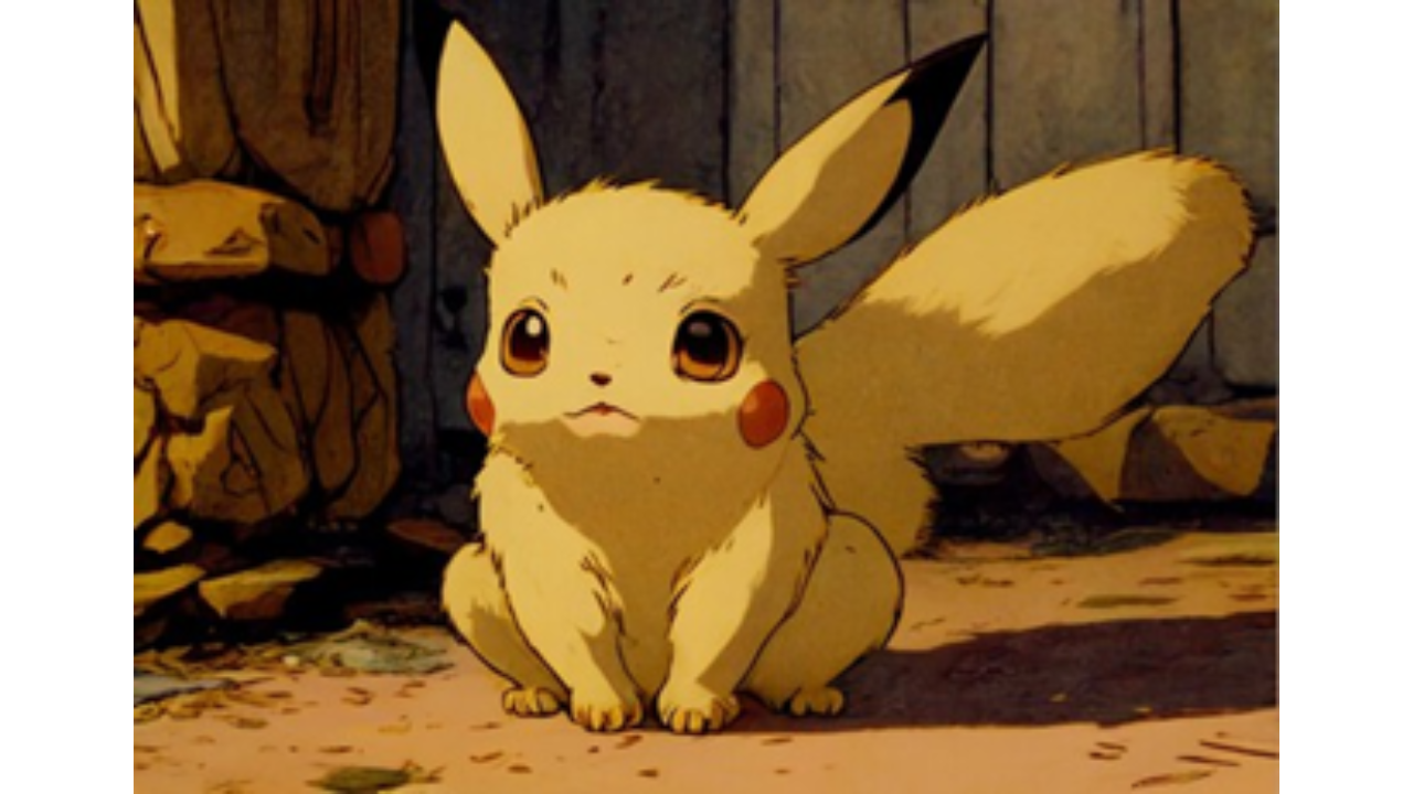 El Pokémon más icónico de todos es Pikachu, este pequeñuelo de tono amarillo se volvió más peludo de lo que es originalmente para la versión de Studio Ghilbi, pero no deja de ser adorable.