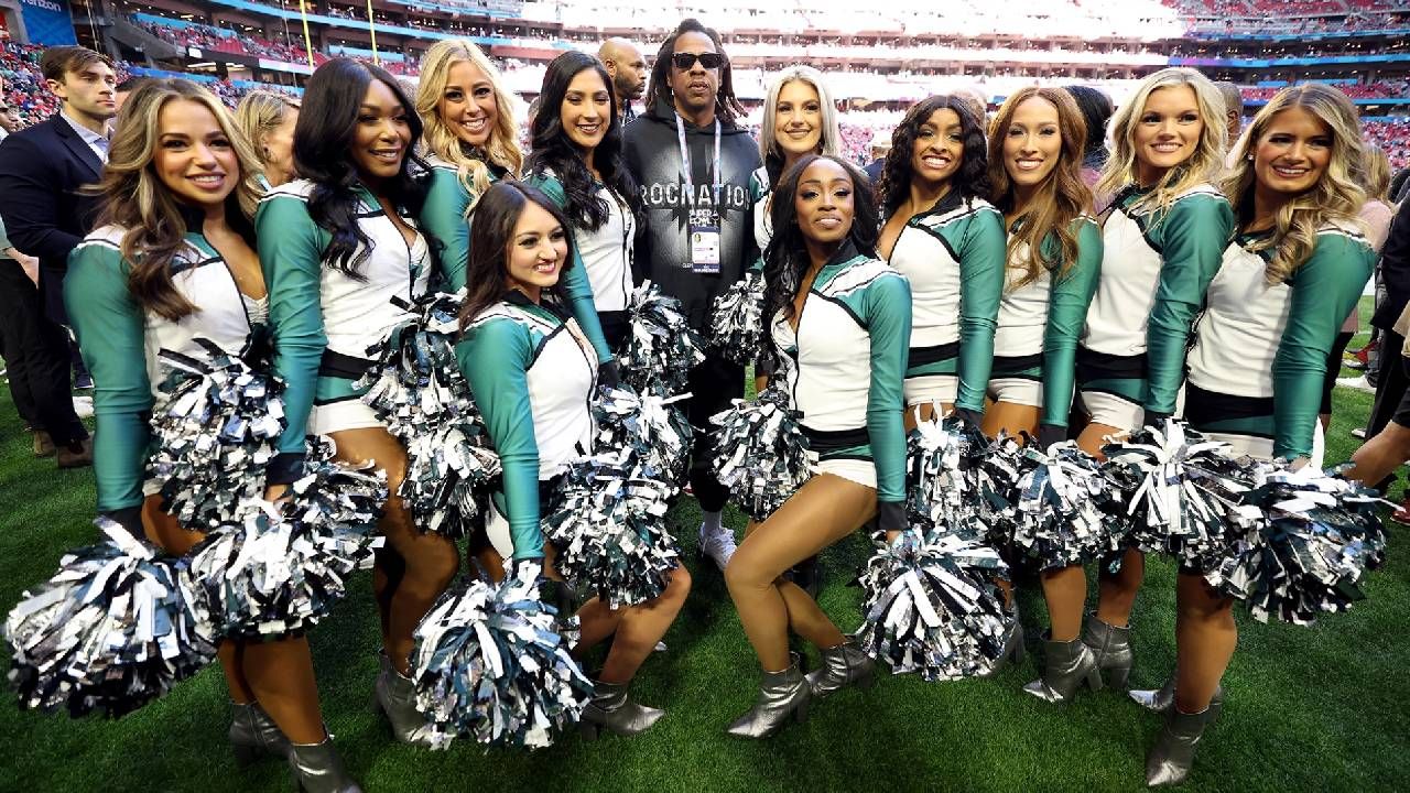 El rapero Jay Z llegó al estadio de los Cardenales de Arizona junto a su hija Blue Ivy y aprovechó para fotografiarse con las porristas de las Águilas. Solo faltó Beyoncé.