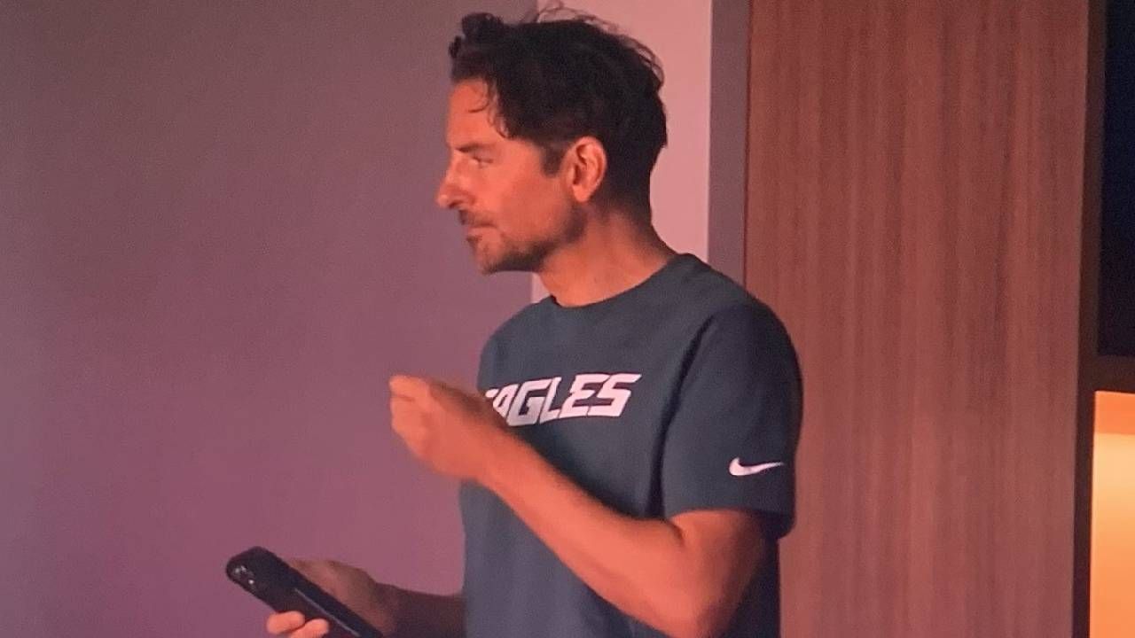 No hay sorpresa que Bradley Cooper se encuentre presente en el estadio, pues desde hace mucho se sabe que es fiel seguidor de las Philadephia Eagles. El actor y director fue retratado comiendo unos snacks desde su palco.