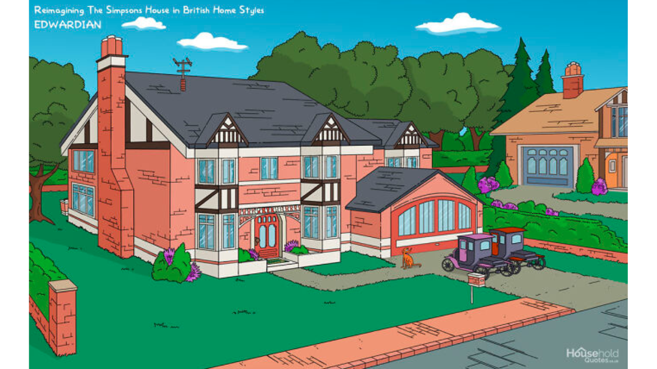 La arquitectura eduardiana consiste en un estilo menos conservador, pero con un toque antiguo. Las varillas de madera, las ventanas con mirador que resaltan en cada habitación, la convierten en unca casa con clase y gran personalidad para la familia de Los Simpson.