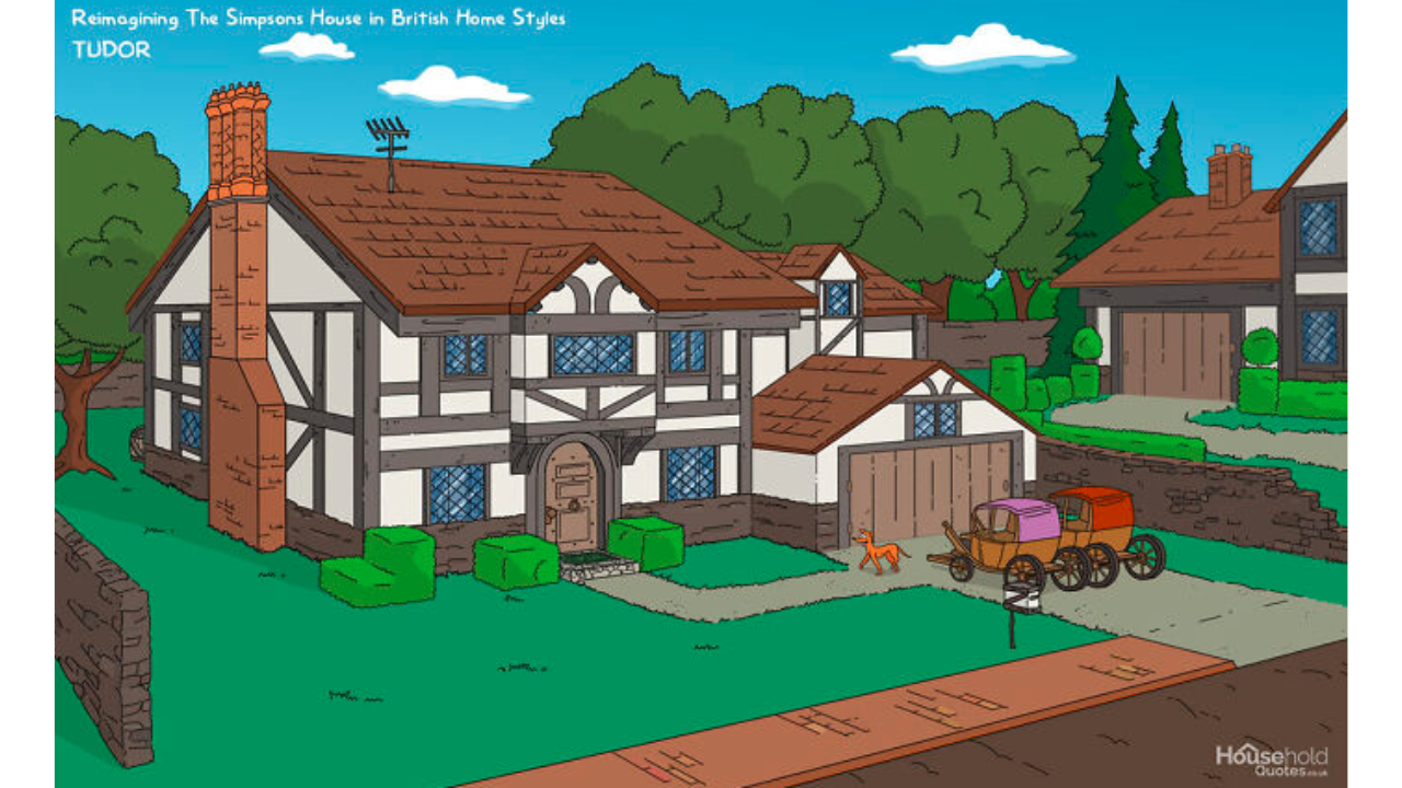 El periodo Tudor fue una época de importantes cambios para Gran Bretaña, donde la clase alta podía construir grandes mansiones de piedra y cristal, mientras que los pobres vivían en casas de adobe. La familia Simpson se dio el lujo de tener una casa con entramados de madera, barro, ventanas enrejadas decoradas y con dos carrosas. ¿Te imaginas un episodio de la serie de Star Plus en este estilo?