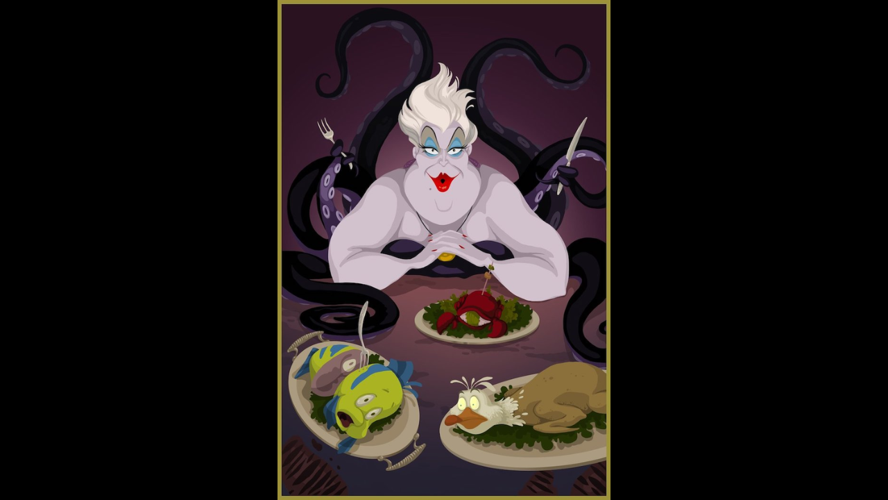 Úrsula sólo queria reinar en el mar y hacer a un lado al cuadrado de Tritón, sin embargo, el artista a cargo de estos artes se imaginó que de paso podría comerse a los grandes amigos de Ariel, ya que estábamos en esto de las venganzas.