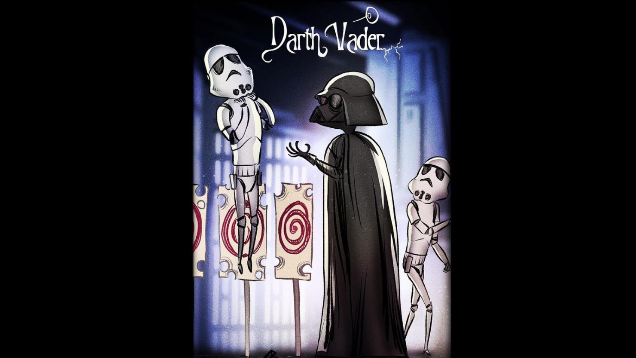 ¡No conoces el el poder del lado oscuro! Darth Vader se ve algo tierno torturando a los stormtroppers en este estilo Burton.