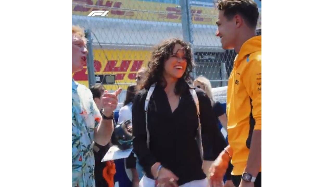 Todos los aficionados de la Fórmula 1 están de fiesta pues hoy toca apoyar al Checo Pérez que viene de llevarse el triunfo en el Gran Premio de Azerbaijan, y de quedarse con la pole, asegurando arrancar desde la primera posición. Dentro de estos eventos deportivos hemos visto a estrellas del cine y la televisión como Sylvester Stallone y Tom Holland, así que esta tarde no fue la excepción y hubo un desfile de celebridades.