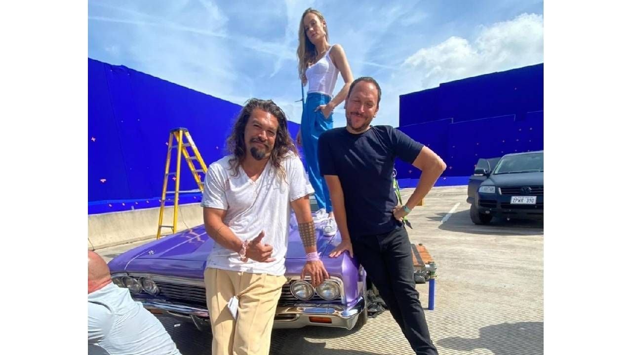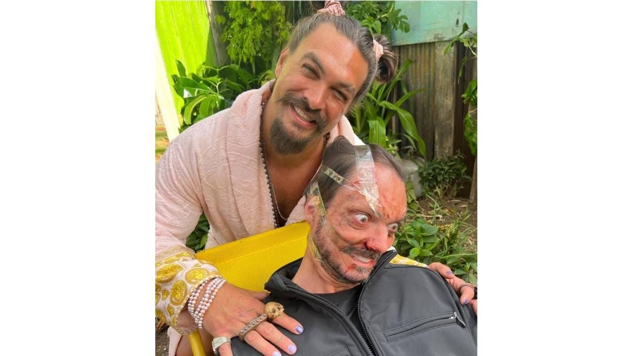Al igual que el muñeco de Chris Pratt creado por el departamento de prostéticos en Guardianes de la Galaxia vol. 3, Jason Momoa no se queda atrás con su gran parecido con su doble de acción, pues al hacer la misma pose hasta parece que son un reflejo dentro de la imagen.