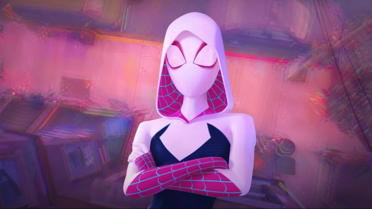 Por su parte, Gwen Stacy, con la voz de Hailee Steinfeld, es otra persona araña que se ve atraída a la dimensión de Miles cuando el colisionador de Kingpin se vuelve loco. Sin embargo, a diferencia de los demás, ella también ha retrocedido en el tiempo. Ella llega una semana antes de que se encienda el colisionador y dice que su sentido arácnido le dijo que pasara el rato en Visions Academy, donde conoce y se hace amiga de Miles. Los dos desarrollan una amistad, y tal vez un poco de romance. En su dimensión, ha sido Spider-Woman durante dos años.