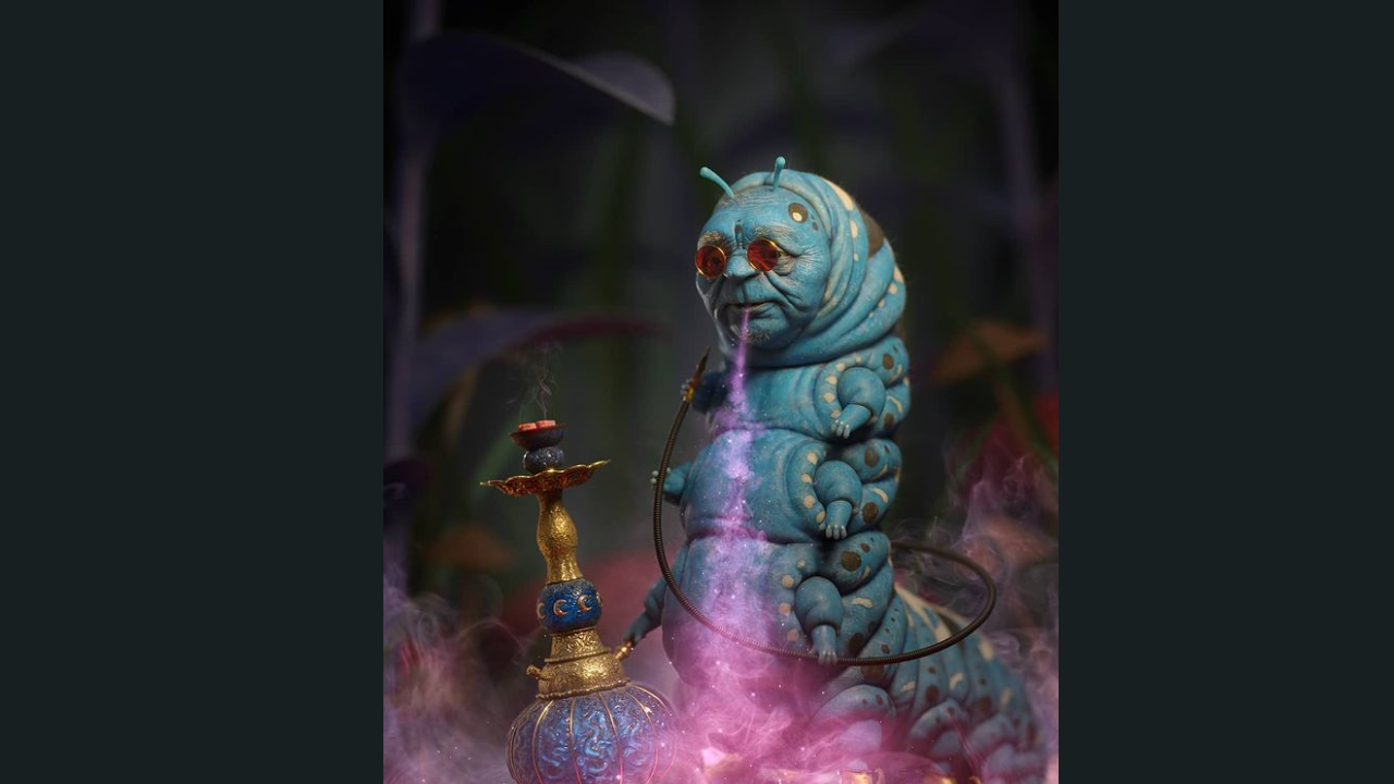 La oruga del live-action de Alicia en el País de las Maravillas, protagonizado por Johnny Depp, siempre está pasado de humos, pero en esta imagen se ve hasta cansado de la vida.