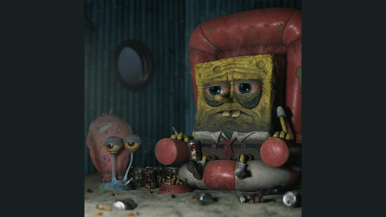 El ambiente entre los millenials está tan deprimente, que un artista brasileño reimaginó cómo sería si los personajes de nuestras caricaturas de la infancia siguieran los mismos pasos que muchos y vivieran en la depresión, la apatía y los vicios, una imagen muy alejada a lo que proyectamos en redes sociales, y por supuesto lejos de ser un retrato del colorido mundo del que salieron Bob Esponja y Bugs Bunny.