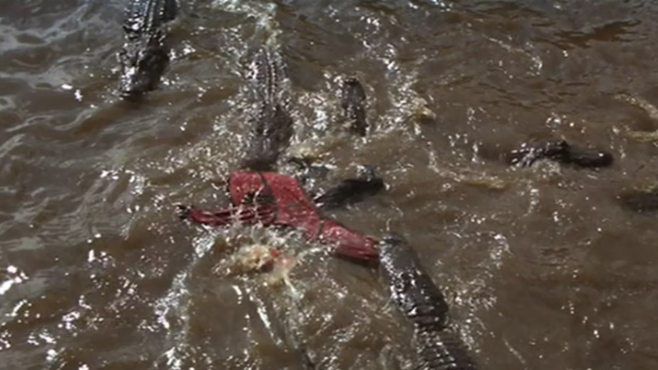 Después de hacer horribles sacrificios con varias de sus víctimas, el lider del culto encuentra su propia muerte cuando se lanza a un río infestado de cocodrilos.