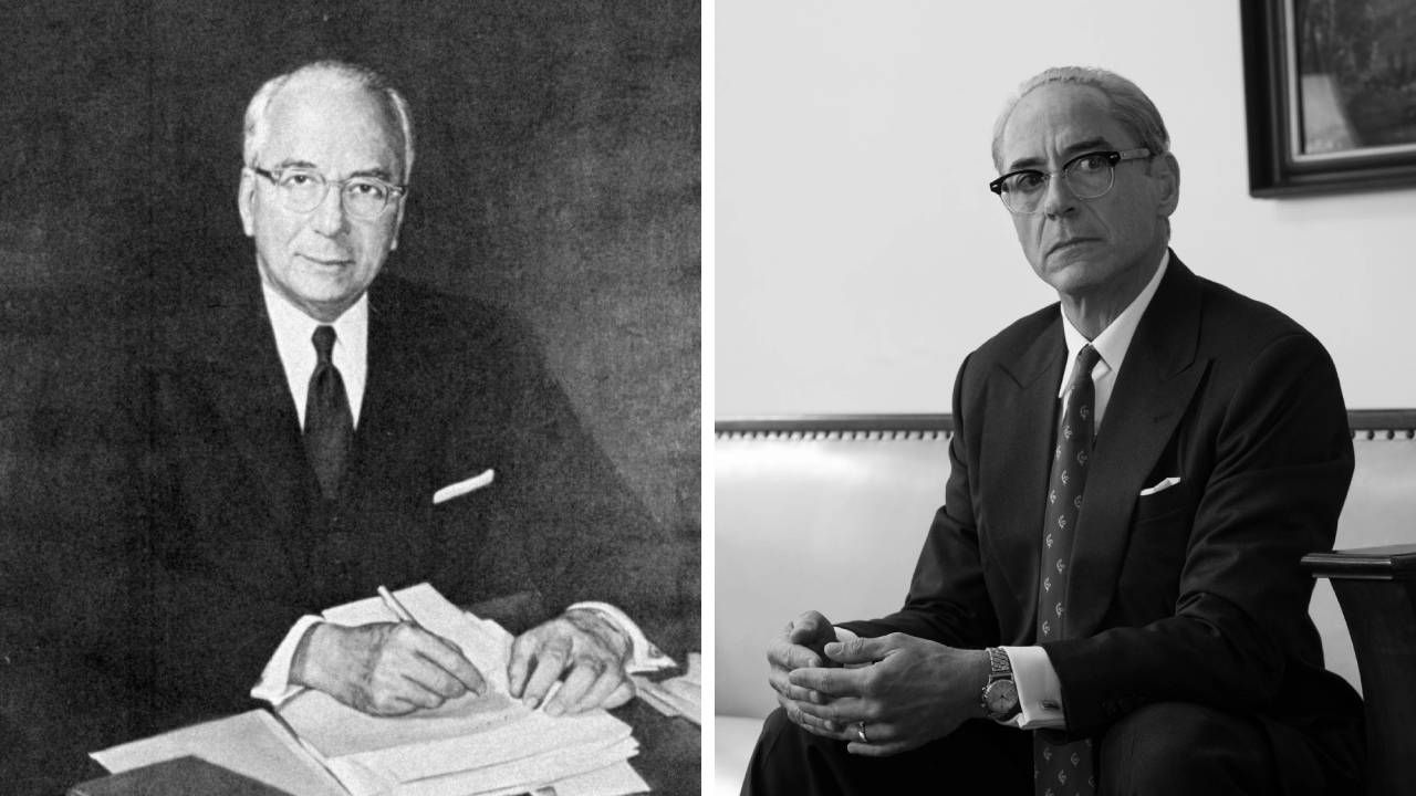 Dejando atrás su largo rol como Iron Man, Robert Downey Jr. interpreta a Lewis Strauss, un empresario, filántropo y oficial naval que fue miembro importante de la Comisión de Energía Atómica de los Estados Unidos y tuvo gran influencia durante el desarrollo de las armas nucleares en el país.