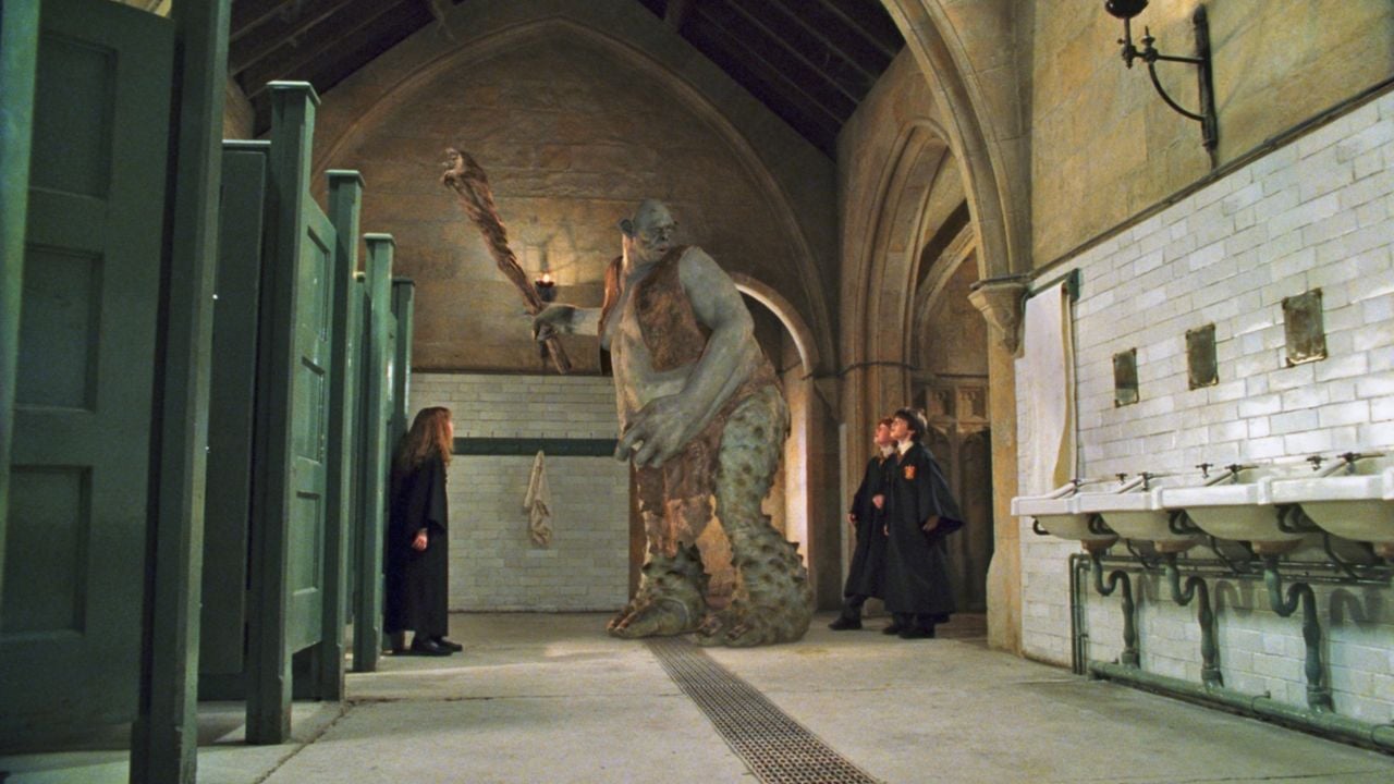 En la primera película, Harry y Ron van a rescatar a Hermione cuando se enteran de que un troll anda suelto. En una secuencia eliminada, el trío de magos va caminando en los pasillos hablando de lo ocurrido, cuando Ron le dice de forma muy tierna a Hermione: "¿Para qué son los amigos?".