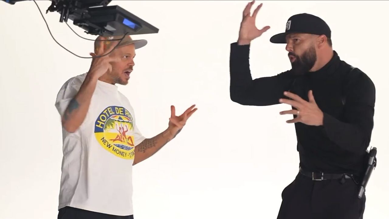 Esta imagen podría retratarse, pues Residente y Ricky Martin tienen una conversación sobre cómo debe actuar el actor de Hércules para el momento del rap.