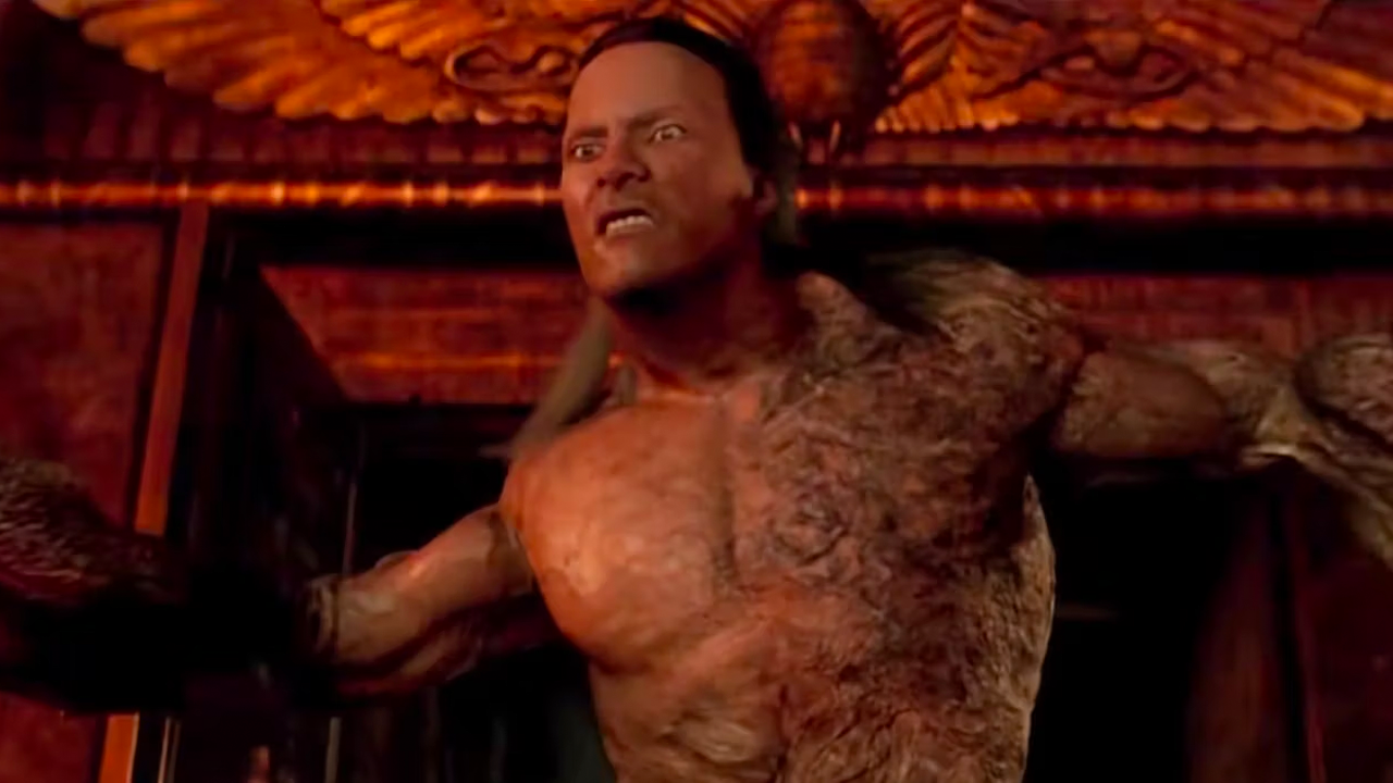 En la secuela de La Momia, vemos al Rey Escorpión, interpretado por Dwayne Johnson 'La Roca', mientras pelea mano a mano con el personaje de Brendan Fraser. Lo que realmente destaca es la imagen monstruosa del Rey Escorpión, que parece venir directamente de un juego de video con las peores gráficas del mundo.