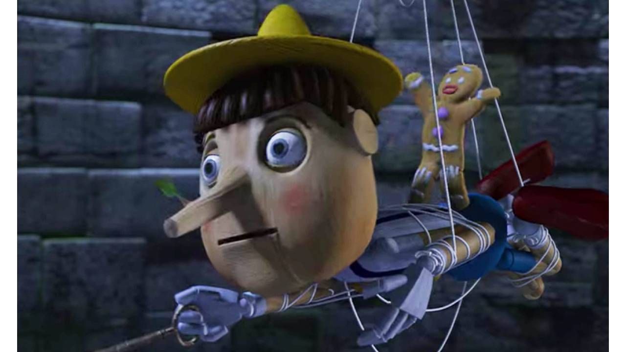 El mítico personaje de los cuentos de hadas terminó ventilando sus aficiones durante el rescate de Shrek, Burro (Eddie Murphy) y Gato (Antonio Banderas). Para salvarlos de la trampa era necesario usar la grande nariz de Pinocho, pero en un intento por hacerla crecer, la marioneta dijo “traigo ropa interior de mujer”, ¡y su nariz no creció!