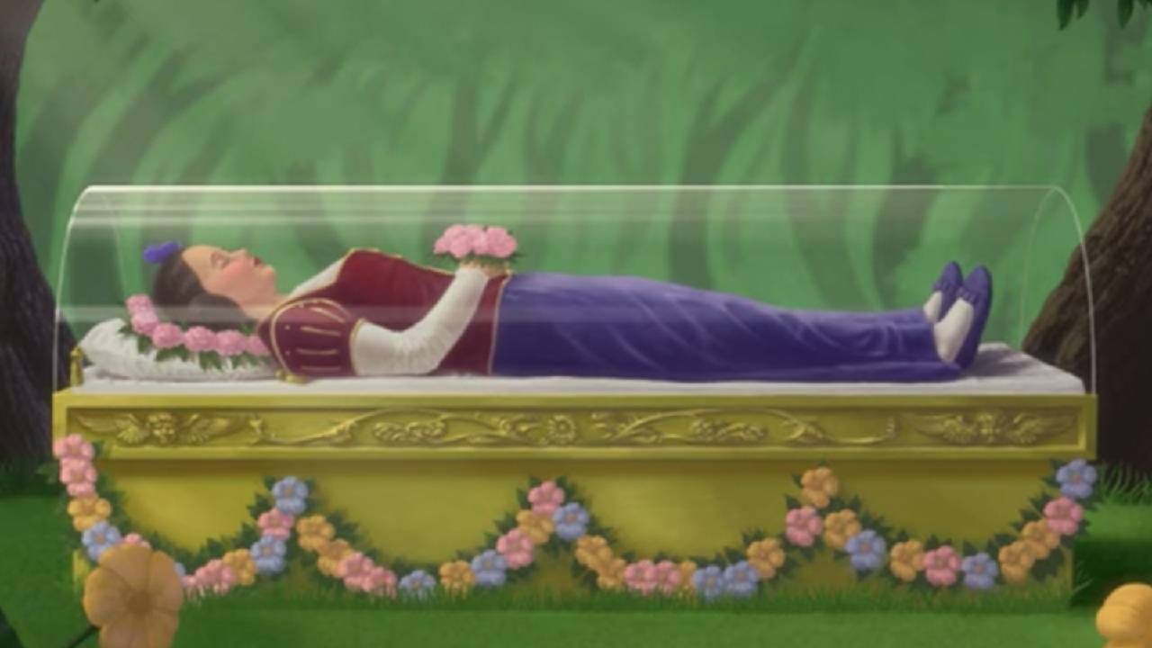 Blancanieves no faltó dentro de la amplia selección de personajes de fantasía, solo que aquí le dieron otro sentido a sus fieles compañeros del bosque. Cuando Lord Farquaad conoce el catálogo de mujeres solteras para casarse, el Espejo menciona que “aunque vive con siete varones, no es chica fácil”. Qué atrevido, ¿no?