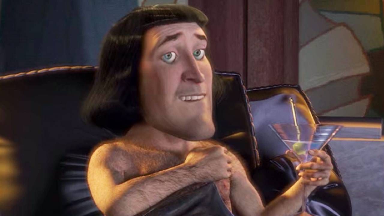Este incómodo momento se da mientras Farquaad disfruta de la noche con un par de copas y desnudo en la cama. Éste le pide al Espejo mágico que le enseñe una y otra vez la imagen de Fiona en el reflejo, algo que le provoca una inusual expresión en el rostro.