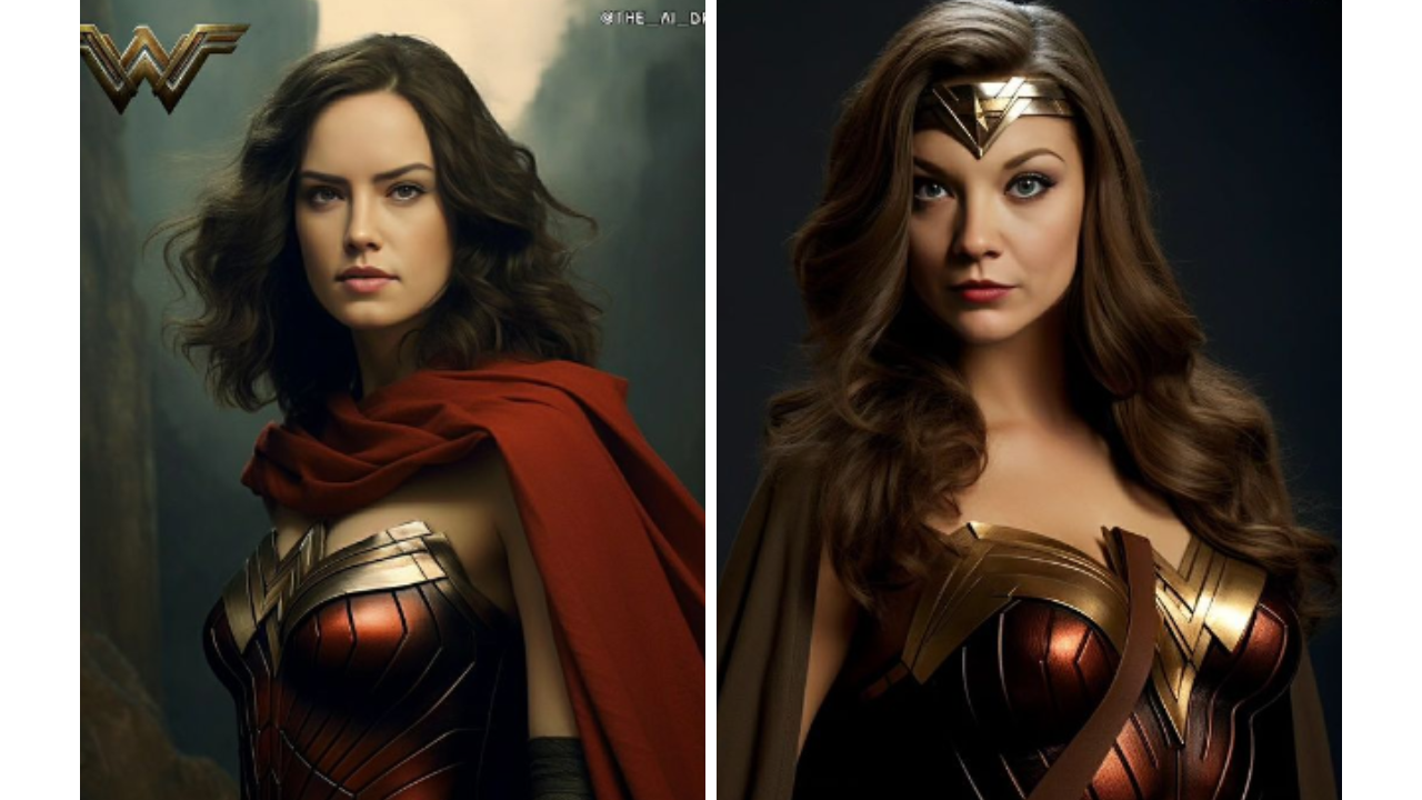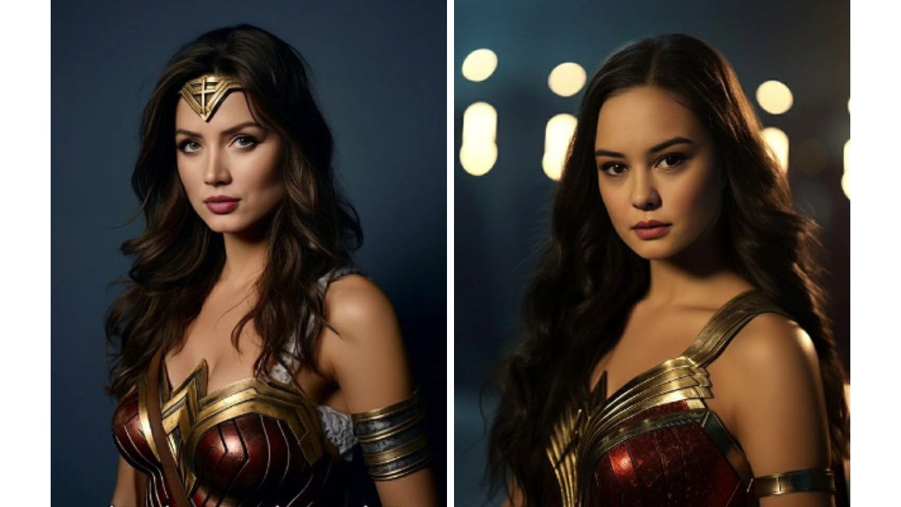 Ana de Armas, la talentosa actriz cubana que ha cautivado a la audiencia en películas como Blade Runner 2049 y Blonde, y Courtney Eaton, conocida por su papel en Mad Max: Furia en el camino, han sido imaginadas como la legendaria superheroína. De Armas irradia un aura de determinación y fuerza, personificando la valentía del personaje. Mientras tanto, Eaton aporta una energía juvenil y una presencia carismática al personaje, ofreciendo una interpretación fresca y enérgica de la princesa amazona.
