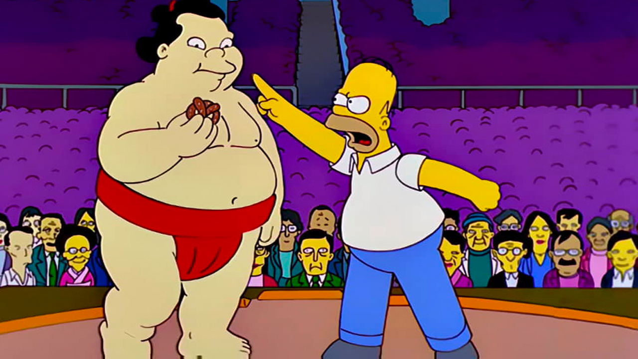 En el capítulo hay una escena en un combate de sumo en la que Homero arroja al entonces emperador Akihito a un baúl lleno de prendas gastadas. La falta de respeto mostrada hacia una figura tan importante en Japón hizo que se prohibiera el episodio.