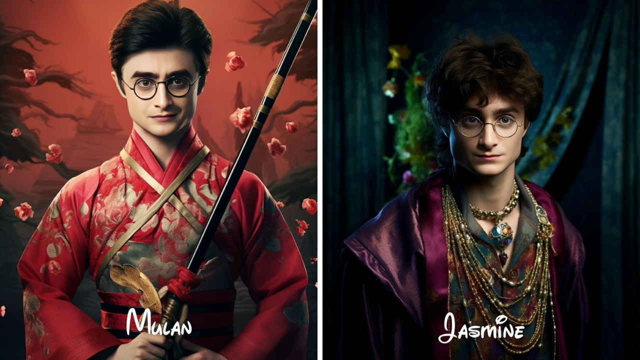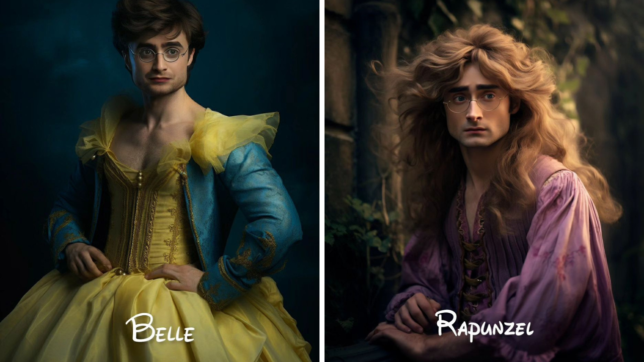 En esta intrigante interpretación, el icónico joven mago, interpretado por Daniel Radcliffe, se transforma en una princesa al estilo Disney. Este sorprendente ejercicio artístico fusiona los mundos de la magia y la fantasía, ofreciendo una perspectiva única que seguro cautivará a los fanáticos de ambos universos, donde la esencia de Harry Potter se entrelaza de manera ingeniosa con la estética y la gracia de las princesas Disney.
