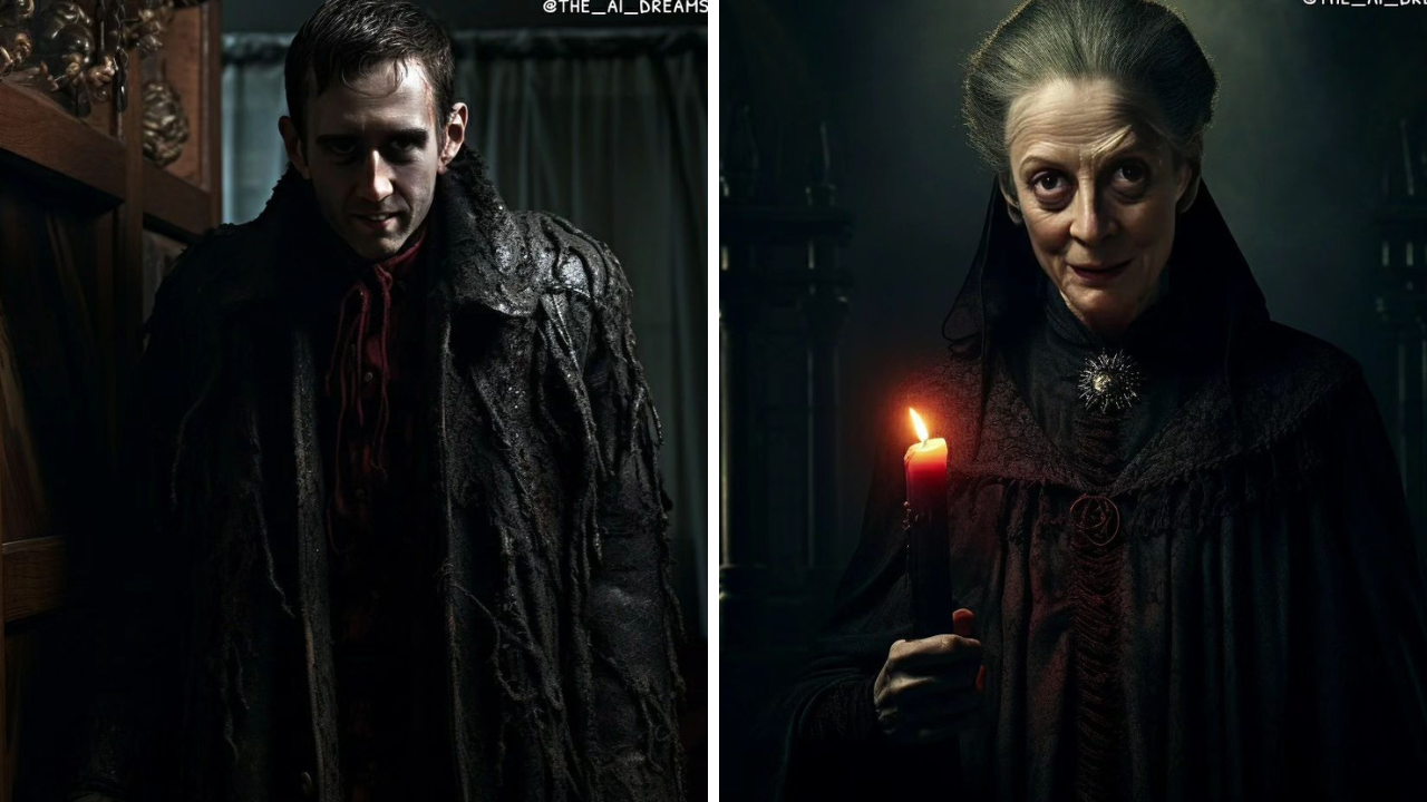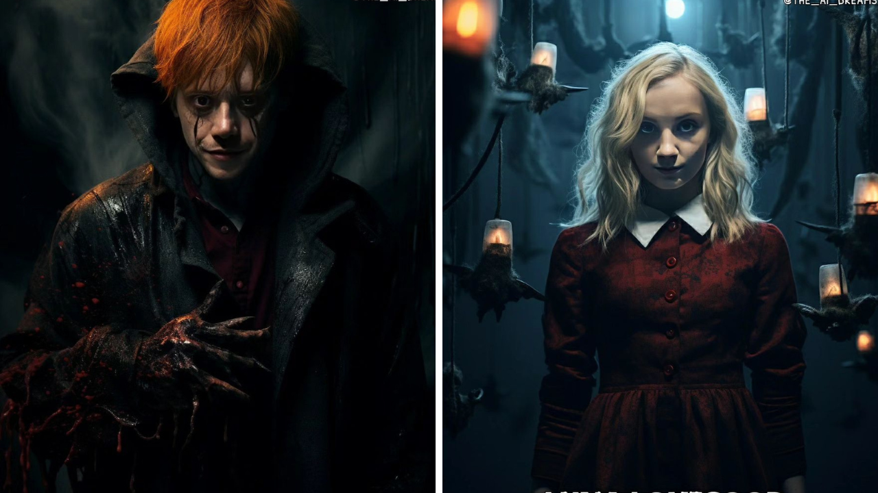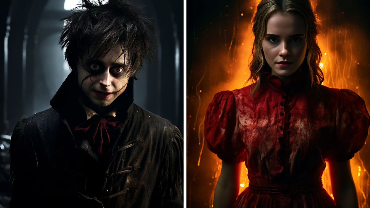 En esta oscura reimaginación, Harry Potter (Daniel Radcliffe) surge como un inquietante experimento al estilo Frankenstein, con suturas marcando su cuerpo y un aura de misterio que rodea su figura. Convertido en una amalgama de magia y ciencia, el joven hechicero ahora representa una poderosa paradoja entre lo sobrenatural y lo científico. Por otro lado, Hermione Granger (Emma Watson) se presenta con una impresionante habilidad para controlar el fuego, desplegando una fuerza sobrenatural que emana de su presencia, convirtiéndola en una figura formidable y aterradora en este universo alternativo.