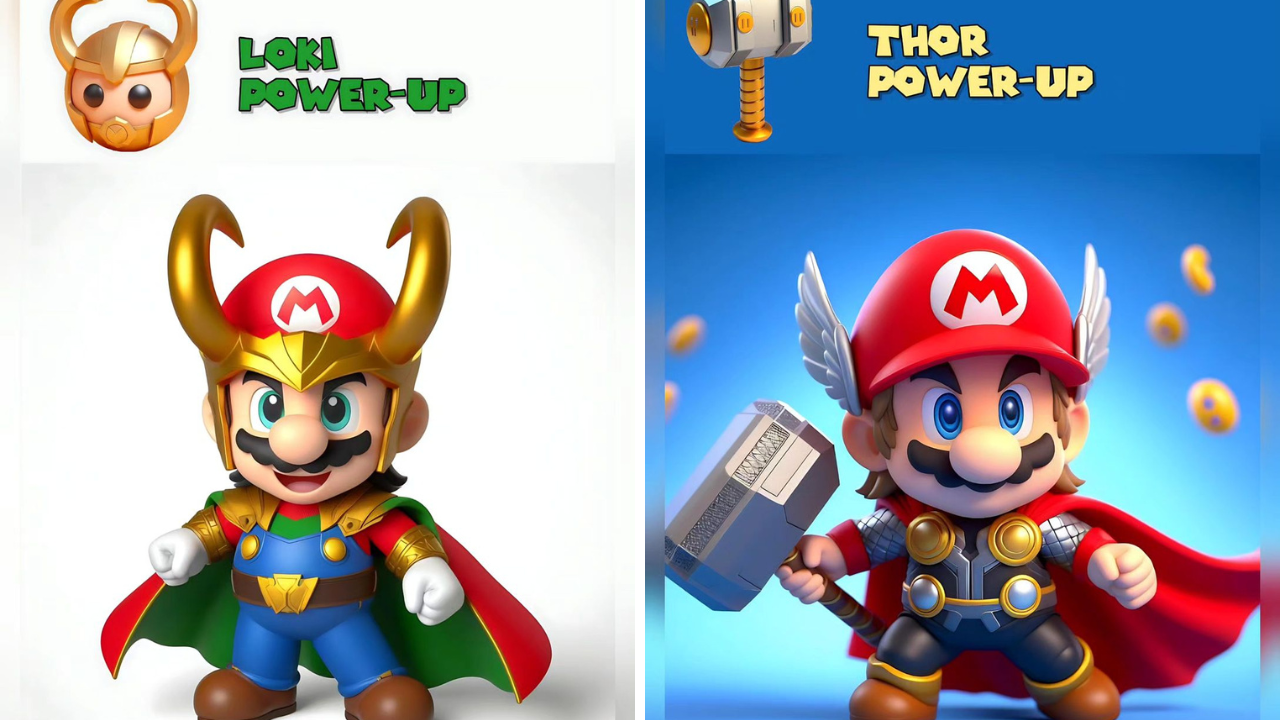 El equipo de @the_ai_dreams nos sorprende una vez más al combinar la nostalgia de Mario Bros con la emocionante energía de los superhéroes de Marvel. Mediante la ingeniosa utilización de la inteligencia artificial, han generado una nueva gama de power-ups que transforman a Mario en un auténtico superhéroe. Imagina a nuestro fontanero favorito deslizándose por el Reino Champiñón con la agilidad de Spider-Man, lanzando ráfagas de energía al estilo de Iron Man o viajando en el tiempo como Loki.