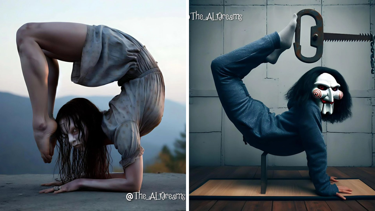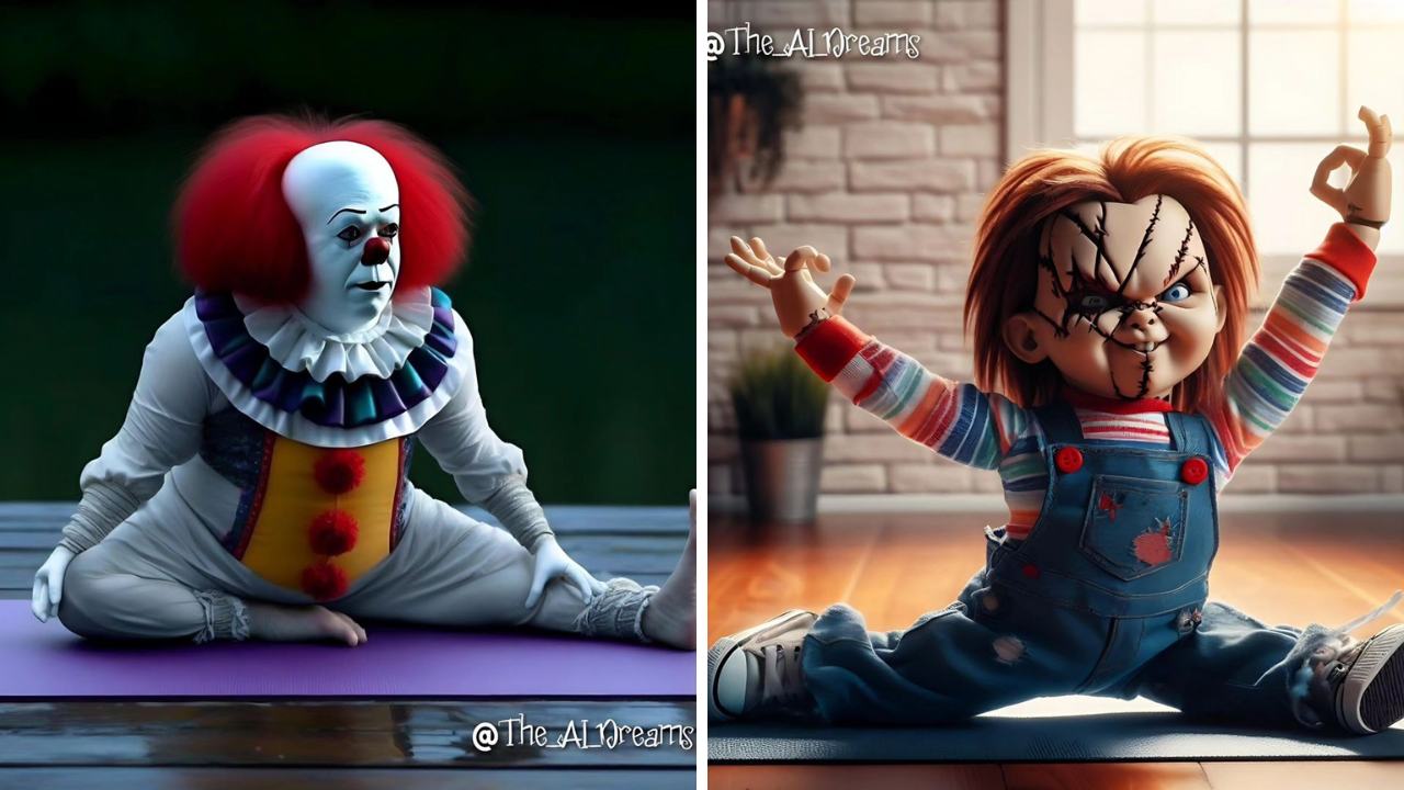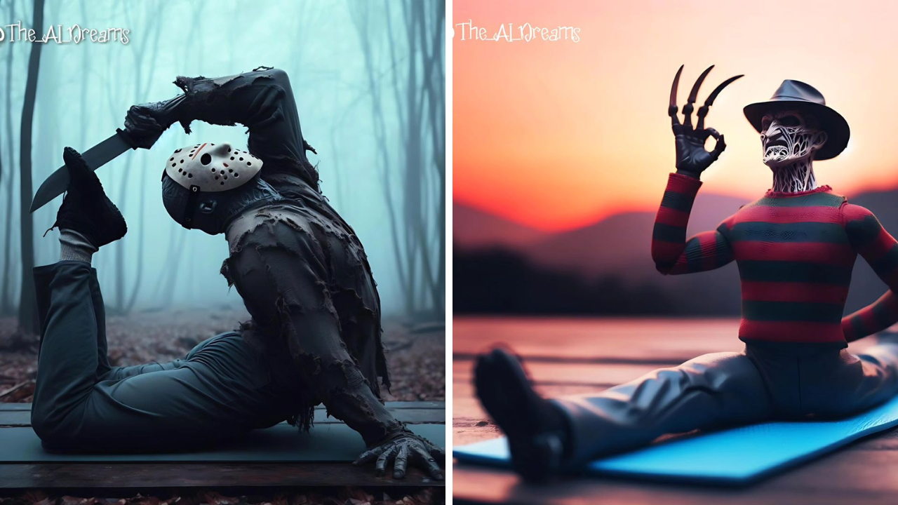La combinación entre el mundo del terror y la práctica de yoga y meditación puede parecer inusual a primera vista, pero una nueva serie de imágenes generadas por inteligencia artificial nos ofrece una perspectiva completamente única. Estos retratos muestran a los icónicos villanos del cine de terror en poses de yoga y momentos de meditación, ofreciendo una nueva mirada a estos personajes que normalmente están asociados con el miedo y la violencia.