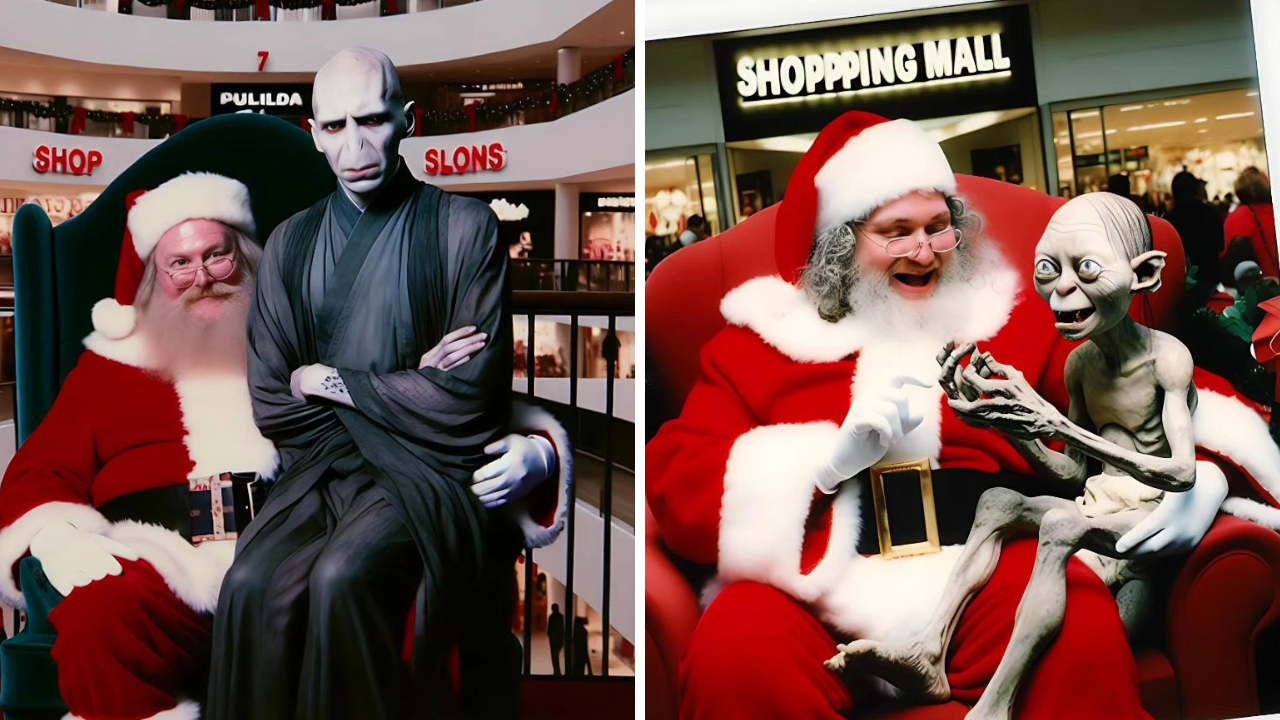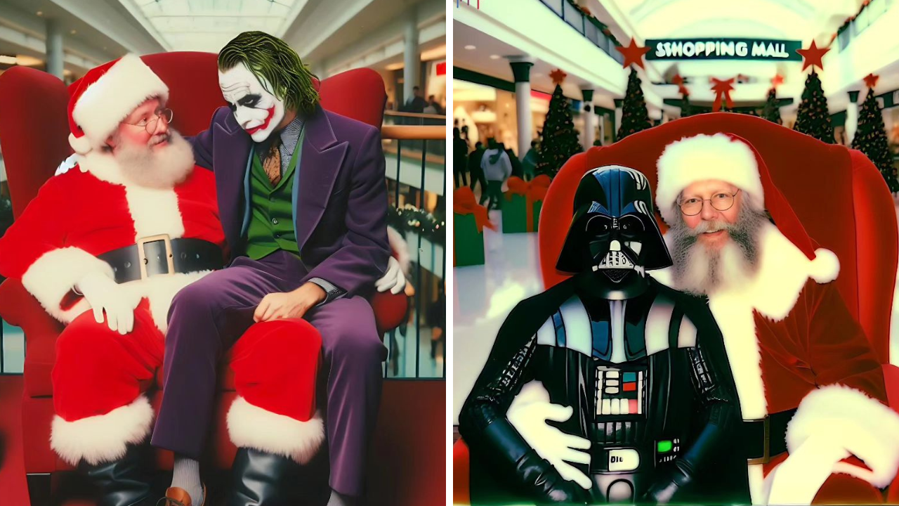 En un nuevo proyecto, el equipo de @the_ai_dreams utilizó la inteligencia artificial para colocar a estos temibles villanos en un escenario ambientado en la temporada navideña haciendo sus pedidos a Santa Claus como cualquier otra persona. La serie de imágenes representa a los personajes cinematográficos con la entrañable figura de Santa Claus, creando composiciones sorprendentes que capturan la esencia única de cada personaje en este contexto festivo.