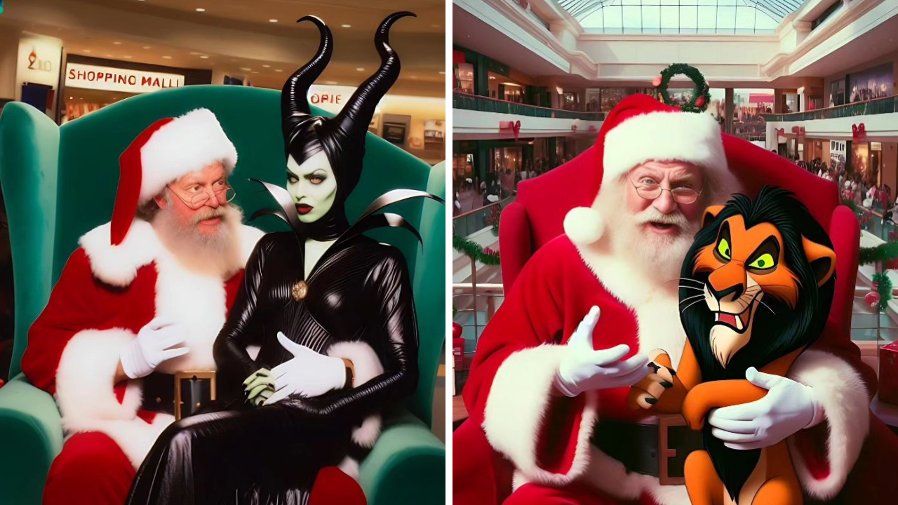 Maléfica (Angelina Jolie) de Maleficent y Scar (voz de Jeremy Irons) de El rey león protagonizan una escena única al solicitar sus deseos navideños a Santa Claus. La elegancia siniestra de Maléfica se une a la astucia de Scar, ambos villanos del universo Disney mostrando una faceta menos amenazante al buscar regalos durante la época festiva.