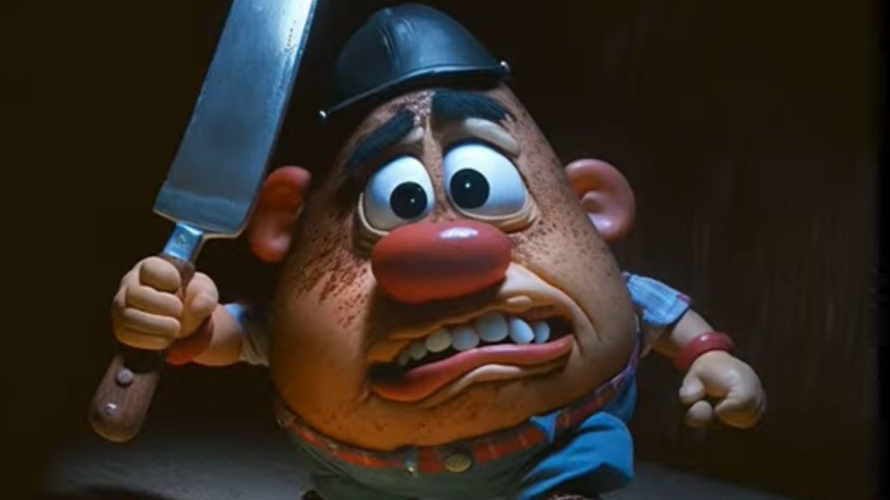 El señor Cara de Papa, una fuente inagotable de diversión en la versión original, se convierte en un verdadero maestro de la inquietud en esta película de terror alterna. Equipado con un cuchillo afilado, este icónico personaje adopta una expresión malévola y retorcida al más puro estilo de los asesinos de Halloween y La masacre de Texas. El rostro moldeable que solía inspirar risas ahora provoca escalofríos.