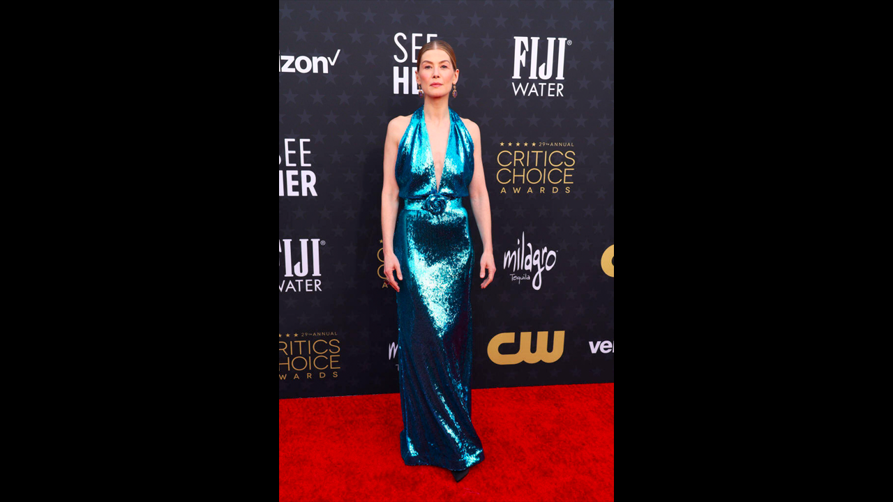 Rosamund Pike también se presentó con mucha presencia en los Critics Choice Awards 2024. En esta ocasión, la actriz no está nominada por su papel en Saltburn.