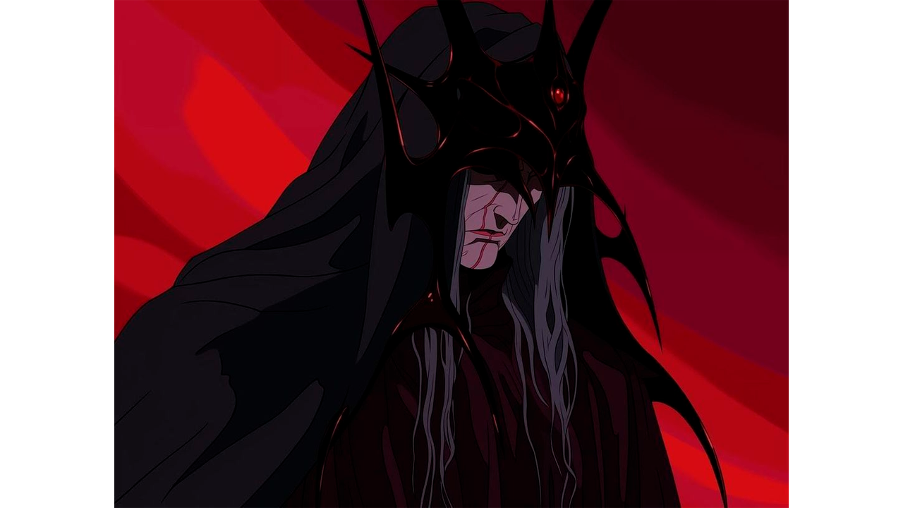 El Señor Oscuro de Mordor. Esta imagen encarna perfecto cómo se vería Sauron antes de perder su forma física ante su deseo de poder y dominio. La imagen tiene un paso más al pintar un hilo rojo recorriendo su rostro, como la sangre que no teme derramar para someter a todos los pueblos de la Tierra Media.