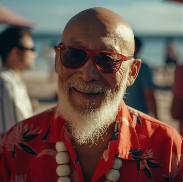 El simpático Maestro Roshi es prácticamente igualito al anime, por mucho una de las mejores creaciones de la inteligencia artificial sobre un anime.