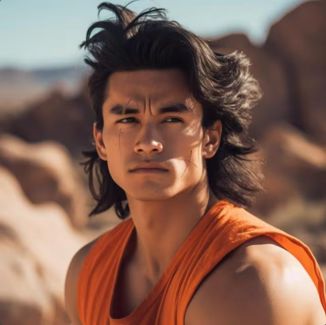 ¡Por fin! Ahora es turno del gran protagonista: Gokú, quien no luce la misma forma del cabello como lo muestra el anime, pero sin duda el rostro es una versión más que creíble de qué pasaría si este Saiyajin viviera en nuestro mundo.