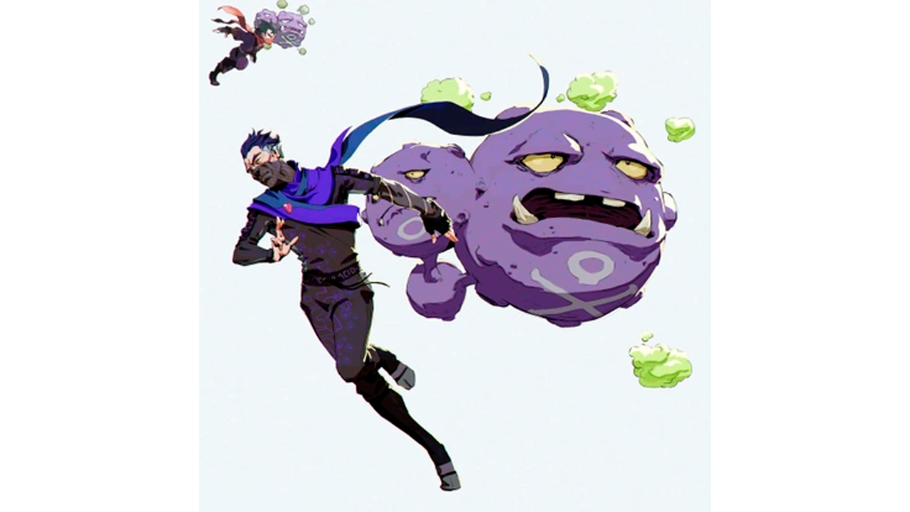 Koga, el venenoso maestro ninja. Es el líder de gimnasio en Ciudad Fucsia y su expertise está en los Pokémon de tipo veneno como el Weezing de la imagen. Su cabello pinta algunas canas y se asemeja un poco a algún hechicero en su mejor momento.