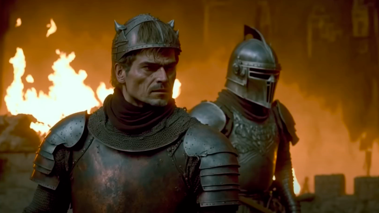 El hábil guerrero de la casa Lannister justo en una escena de combate. También llamado "El Matarreyes" Jaime Lannister está listo para trazar su legado.