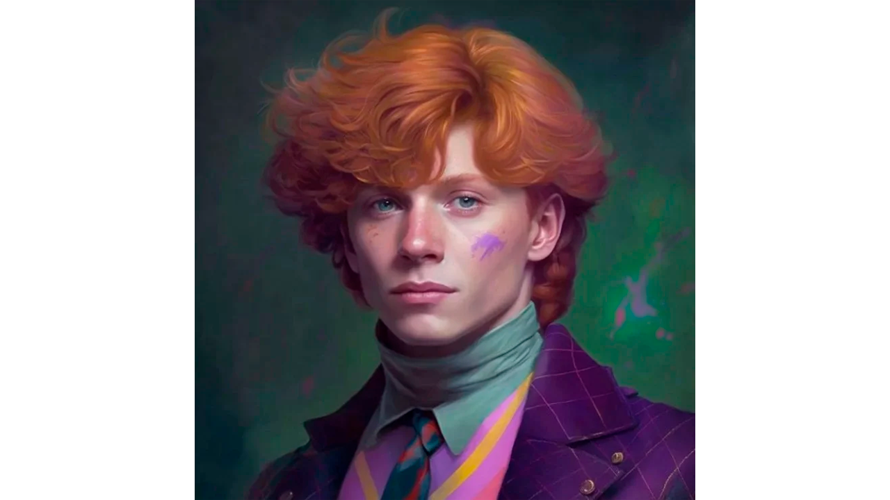 ¡Otro Weasley! Ron parece estar posando para la fotografía del anuario escolar, o tal vez para su autobiografía como artista. A juzgar por la mancha de pintura en su mejilla podría dedicar su vida a elaborar interesantes cuadros salidos de su imaginación. ¿Qué opinas?