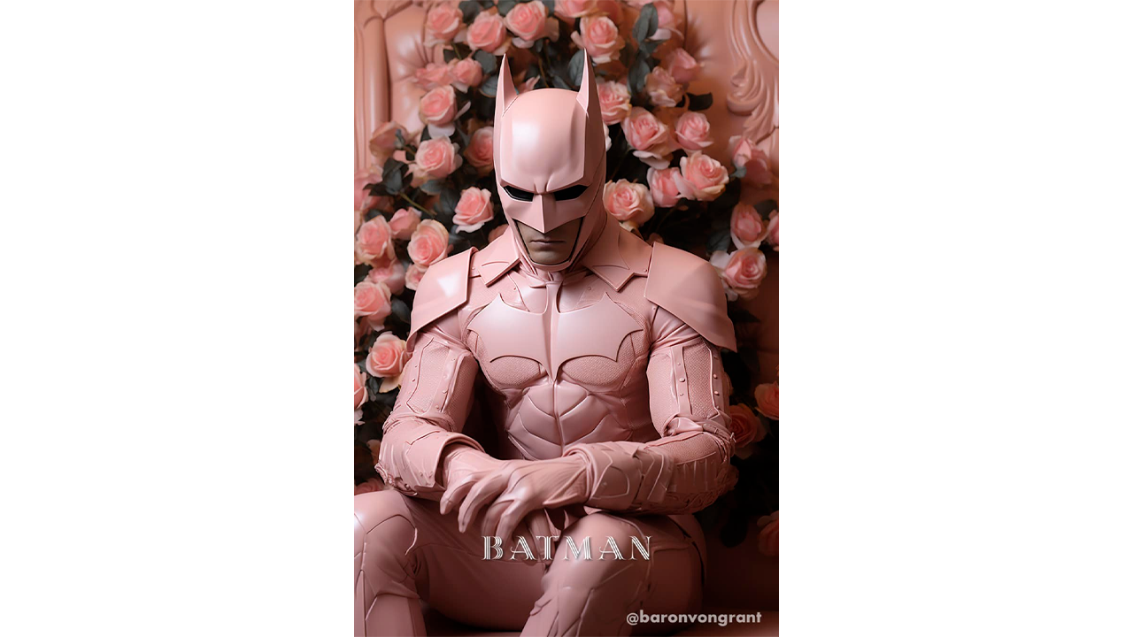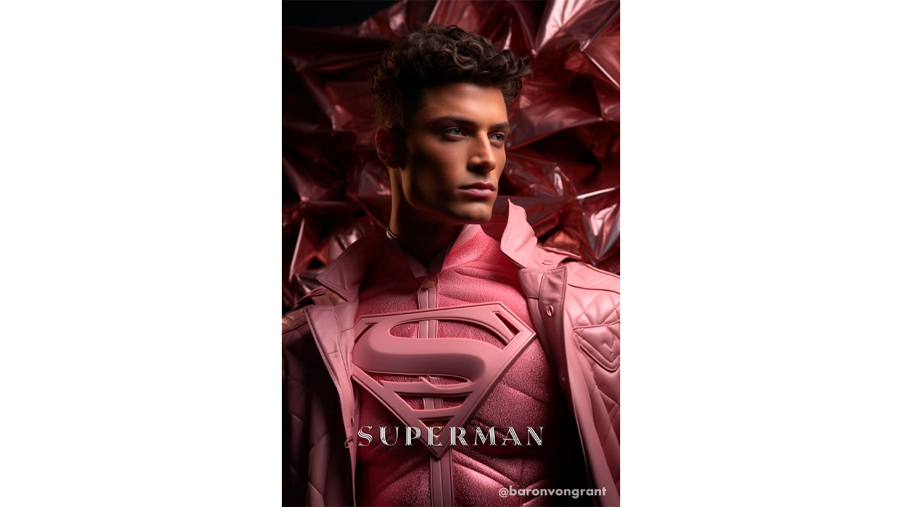 El hombre de acero también optó por un estilo monocromático. Aun así, usando distintos tonos de rosa logra resaltar el símbolo de la esperanza en su pecho.