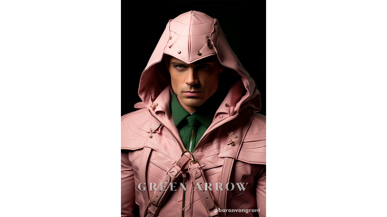 Más pink que nunca, Green Arrow usaría una gabardina color rosa. Pero claro que para seguir siendo flecha verde, tendría que usar una prenda de este color debajo... es un buen contraste.