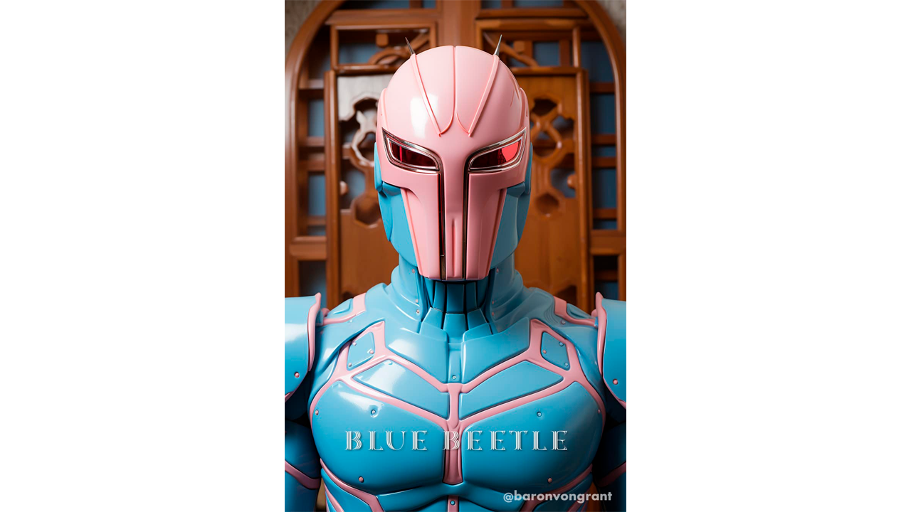 La armadura de Jaime Reyes aka Blue Beetle definitivamente se ve mucho más fetch con esas líneas rosa pastel corriendo a través de ella. El casco rosa es un toque extra.