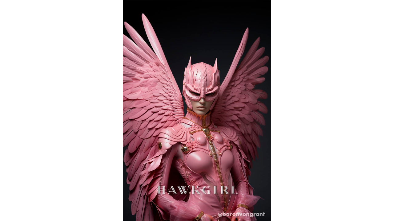 Una transformación total para Hawkgirl quién luciría un atuendo rosado desde la pluma más alta de sus alas hasta la punta de sus pies. La duda es si su mazo de metal Nth también sería de este color.